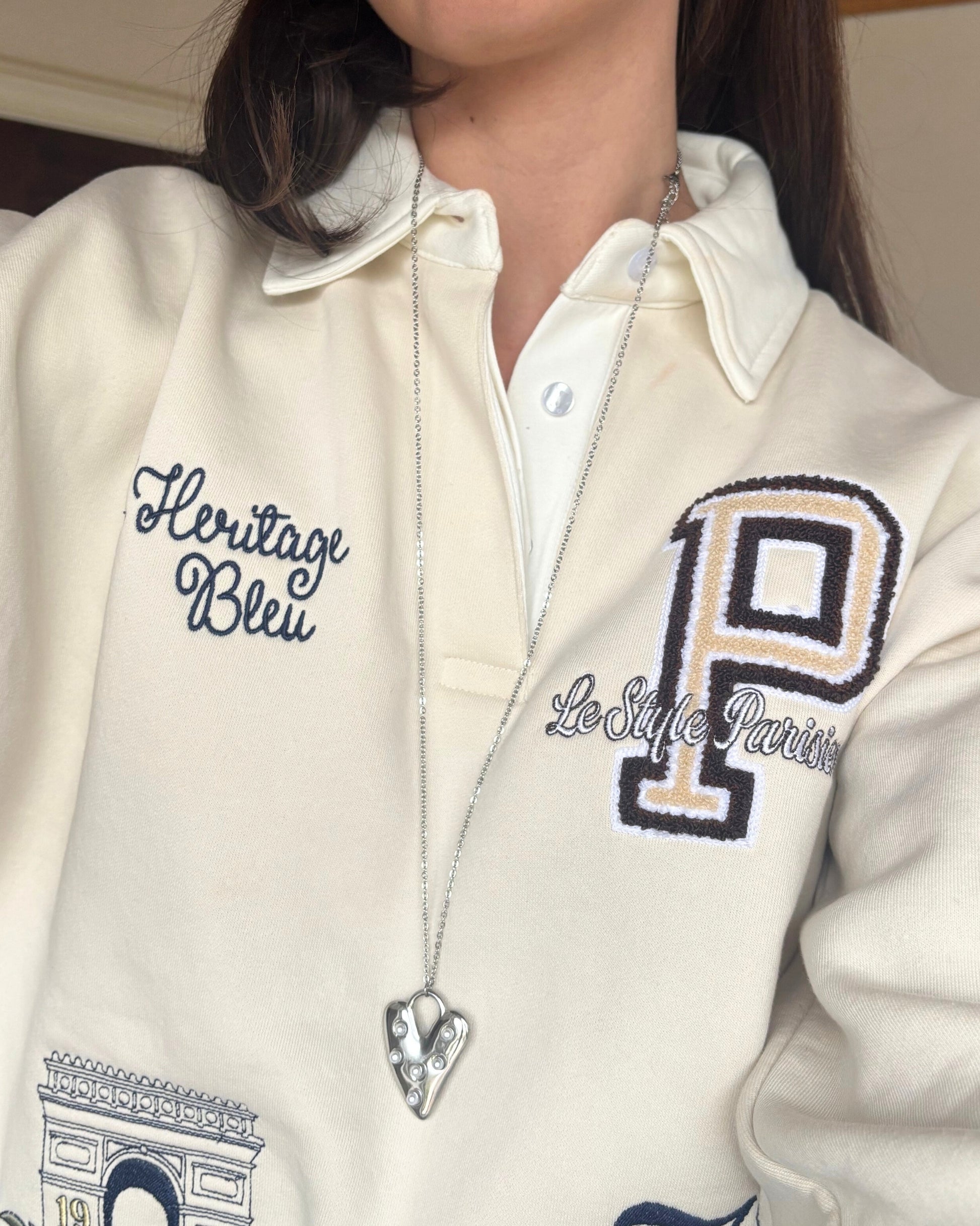 A real eye-catcher. This long necklace with a heart drapes beautifully and instantly adds a soft, feminine vibe to any outfit.